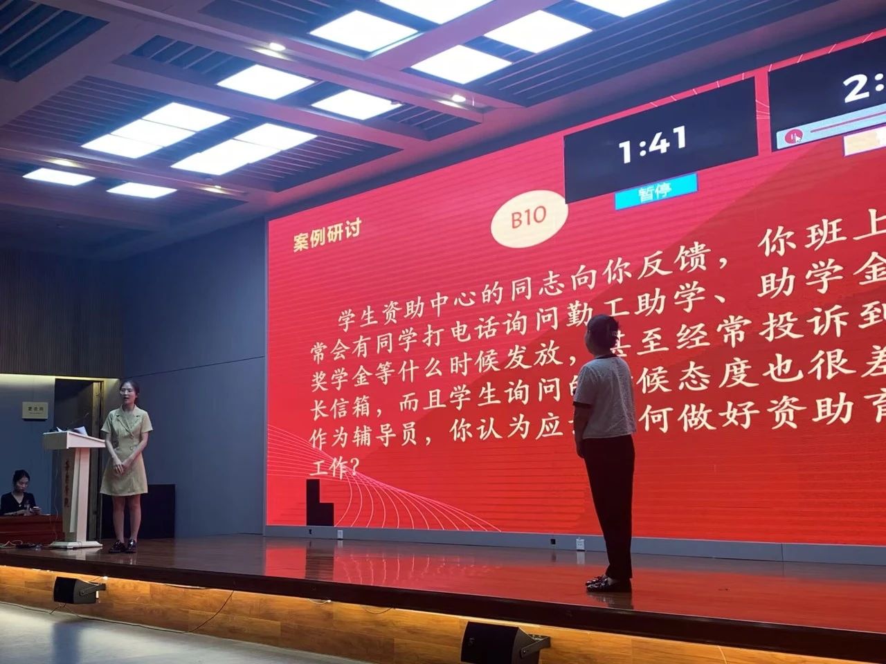 大赛秉承“以赛促建、以赛促学、以赛促进”原则,赛前开展了赛事经验分享,分享了相关书籍和资料,为辅导员快速了解赛事规则和备赛提供了方向和方法论指导,比赛中严格按照方案要求开展,力求公平公正公开。接下来,学校将引导辅导员写好新时代立德树人答卷,进一步推动辅导员专业化职业化发展。