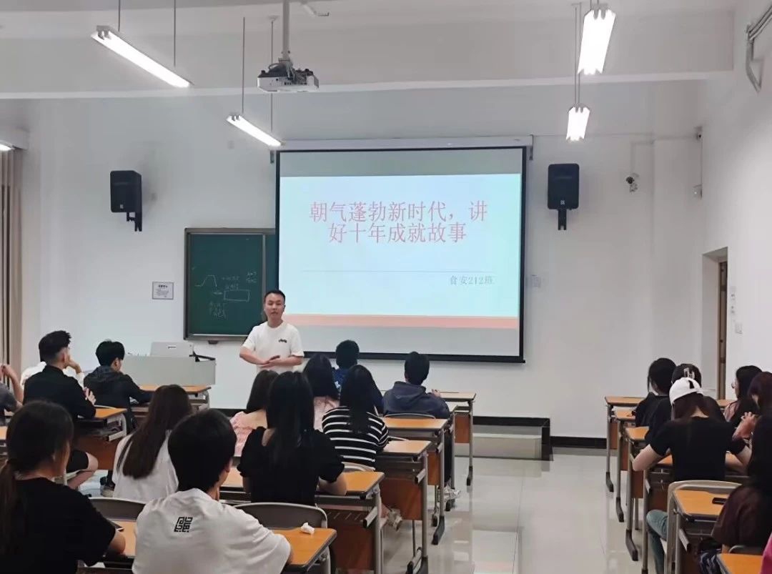 各系通过观看视频、辅导员讲解、学生分享、畅谈感受和认识等方式,围绕党的二十大精神,重点讲授和学习了十年来,对党和人民事业具有重大现实意义和深远历史意义的三件大事。了解了贵州的高速发展,在理论学习和现实感知中引导大家用心感受新时代十年的历史性成就和历史性变革,牢记习近平总书记的嘱托,立志做有理想、敢担当、能吃苦、肯奋斗的新时代好青年,踔厉奋发,续写青春华章。
