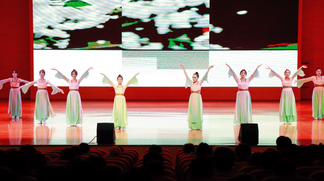 演讲中场,大学生艺术团还为台下观众带来了精彩的表演,动听的歌声袅袅余音,优美的舞姿给人以美的熏陶。