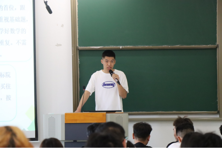 王正峰等5位同学依次发言。他们回顾了进校以来的学习生活,对同学们考研的决定做出了剖析和鼓励。研究生考试报名在即,还对当前国家出台的考研相关政策进行了解读,建议同学们明确考研流程,注意时间节点,提醒同学们要早做准备,为自己的未来提前规划。五位同学分别从考研前期准备、各科复习建议、心态调整等多方面进行分享。最后预祝所有参加考研的同学成功上岸!