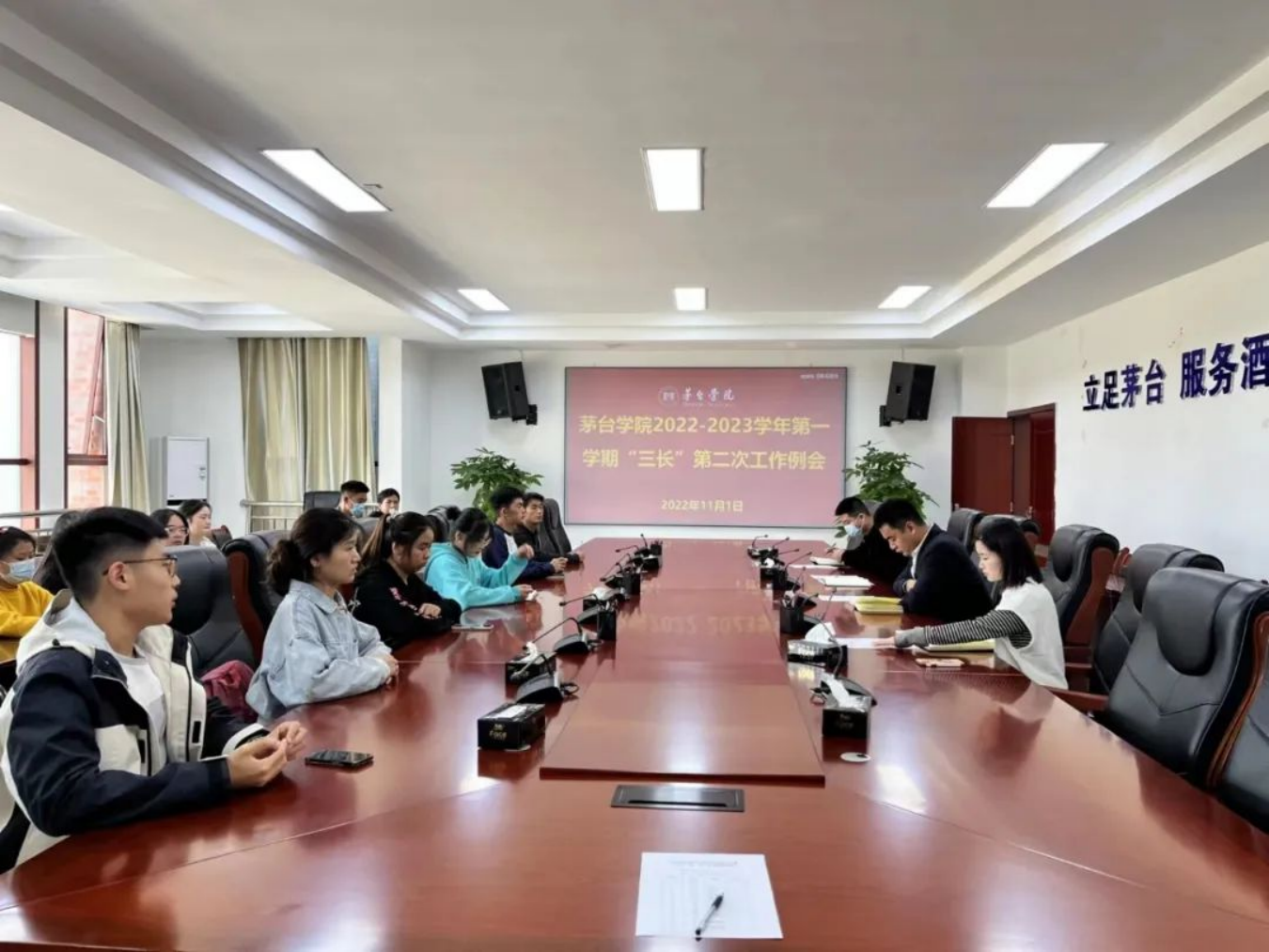 为发挥优秀学生参与寝室管理的桥梁纽带作用,加强学生自主管理能力,进一步提高寝室管理质量,11月1日中午,2022-2023学年第一学期“三长”第二次工作例会在行政楼二楼会议室召开,学生工作部(处)副部长、保卫处副处长黄训星,党委宣传部、学生工作部(处)相关人员,全体楼长、楼层长参加会议。