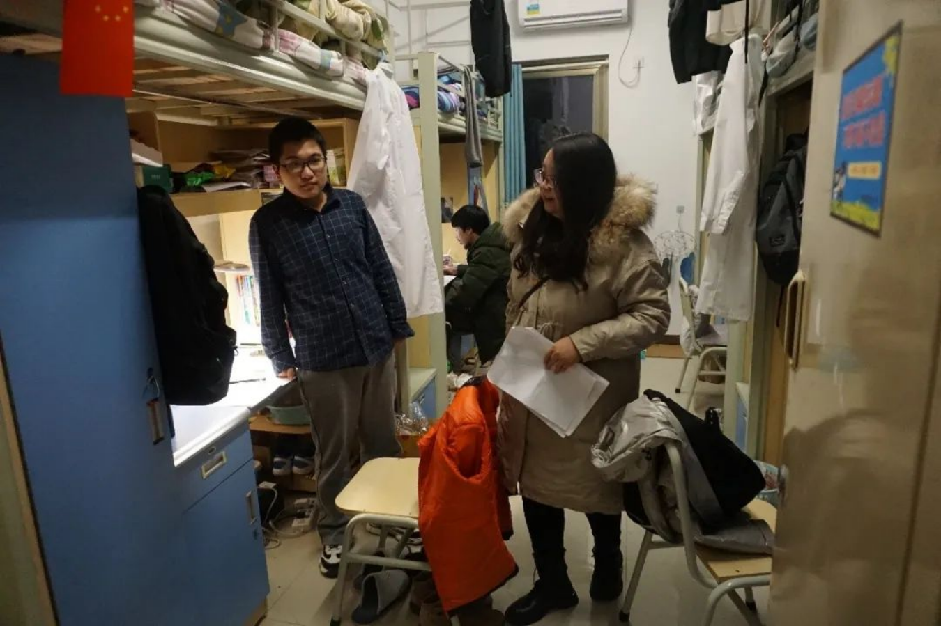 为了督促同学们合理规划时间,认真学习,了解寝室安全情况,辅导员老师和学生干部深入寝室,关心学生生活、安全,寝室关系,督促学生合理作息。