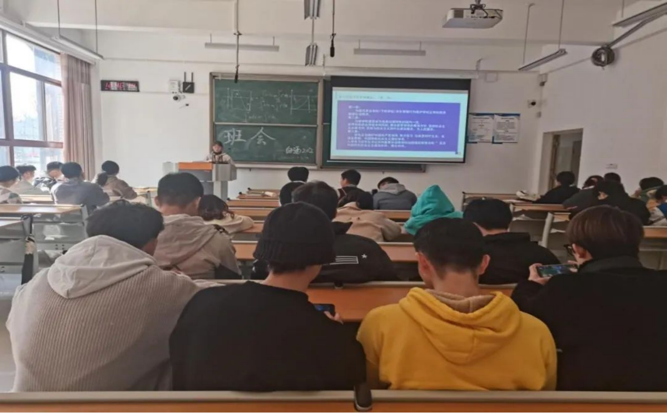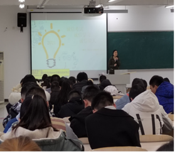 辅导员老师为同学们做考研介绍,包括考研目的、考研流程、如何选择学校和专业,怎样开展准备等。辅导员结合自身考研历程,针对考研各阶段提出了合理的建议,鼓励同学们积极考研,坚持不放弃。
