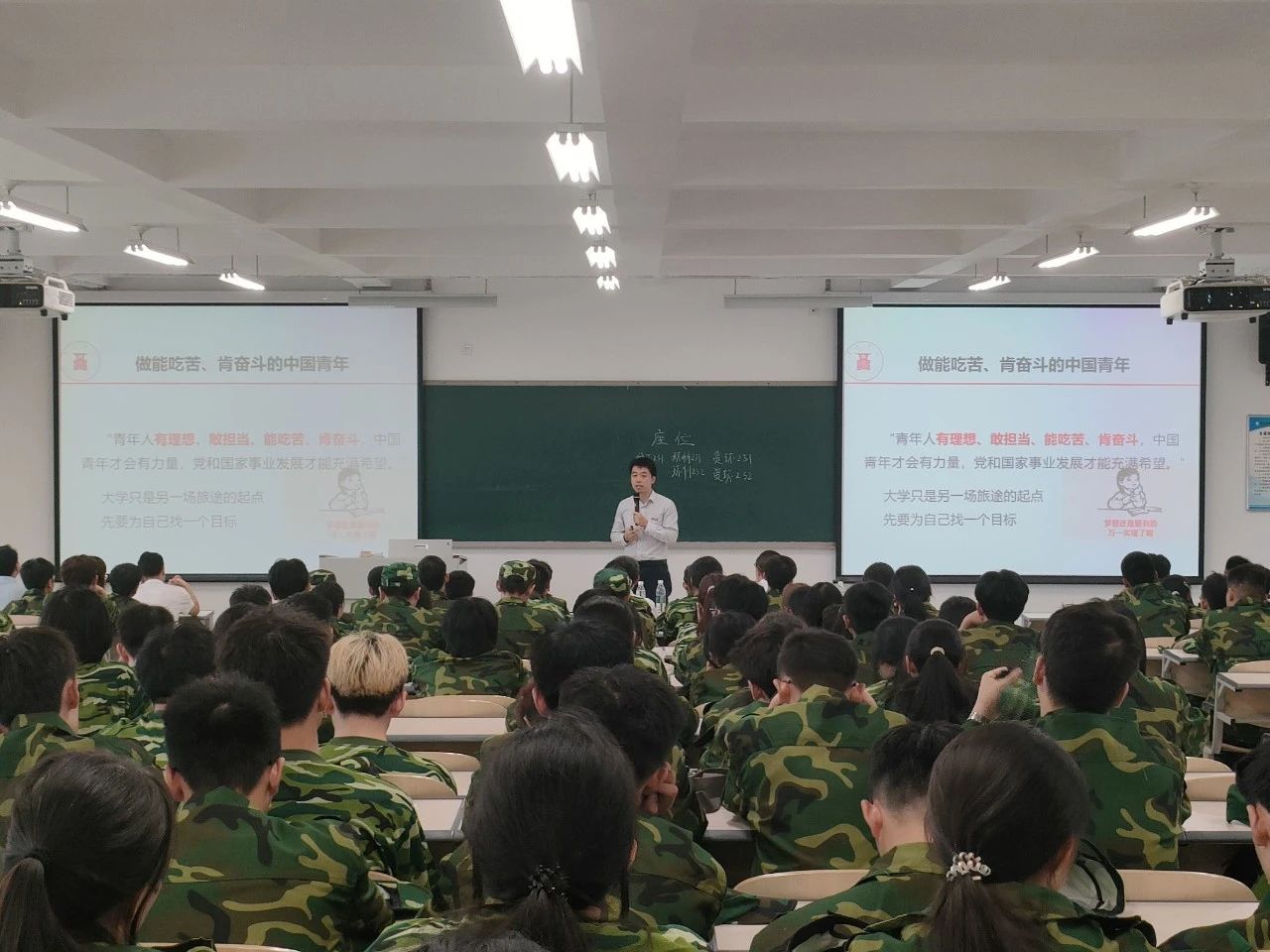黄华老师向2023级新生开展理想信念与价值认同教育。黄华老师提到:青年人要有理想、敢担当、能吃苦、肯奋斗,中国青年才会有力量,党和国家事业发展才能充满希望,每一位青年学生都应该树立远大目标,鼓励新生都能以先进的思想武装头脑,积极向党组织靠近。此外,黄老师还提到新生应该具备身份转换意识,尽早适应大学生活。