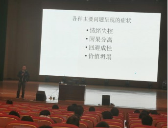 在点点体育迎来了首届毕业生之际,为了让毕业生可以更好地适应从“学生”到“工作人员”身份的转变,点点体育举办了关于2017级毕业生的社会适应性讲座。此次讲座的主讲教师是来自贵州师范大学心理学院的副教授黄亚夫老师。黄老师首先为同学们讲解了毕业生常见的情绪失控、因果分离、回避成性、价值坍塌等主要问题症状;然后结合案例为同学们分析了大学生的四种心理状况;最后通过小故事、案例分析等教会我们如何去应对从学校到社会过渡中的问题。