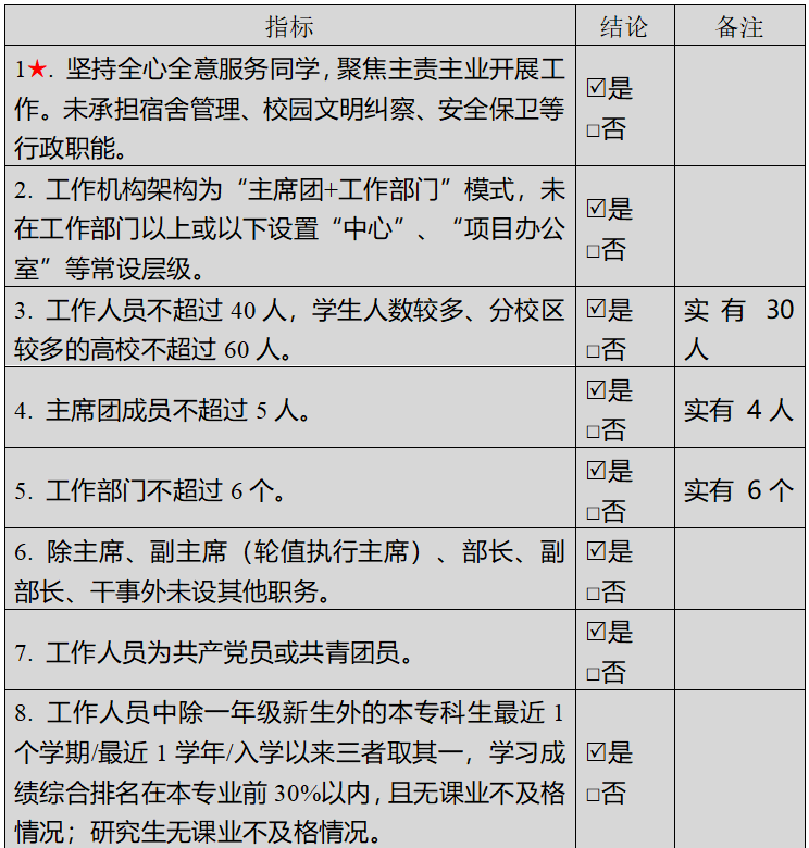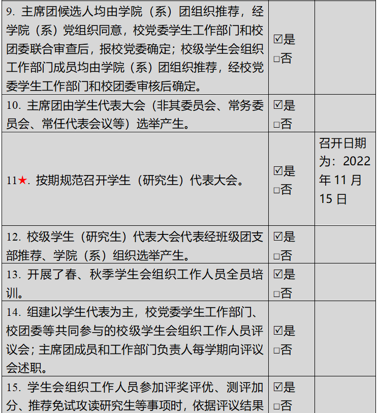(二)二级学生会组织(含二级院系、书院、分校区等学生会、研究生会)改革自评表