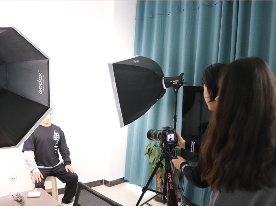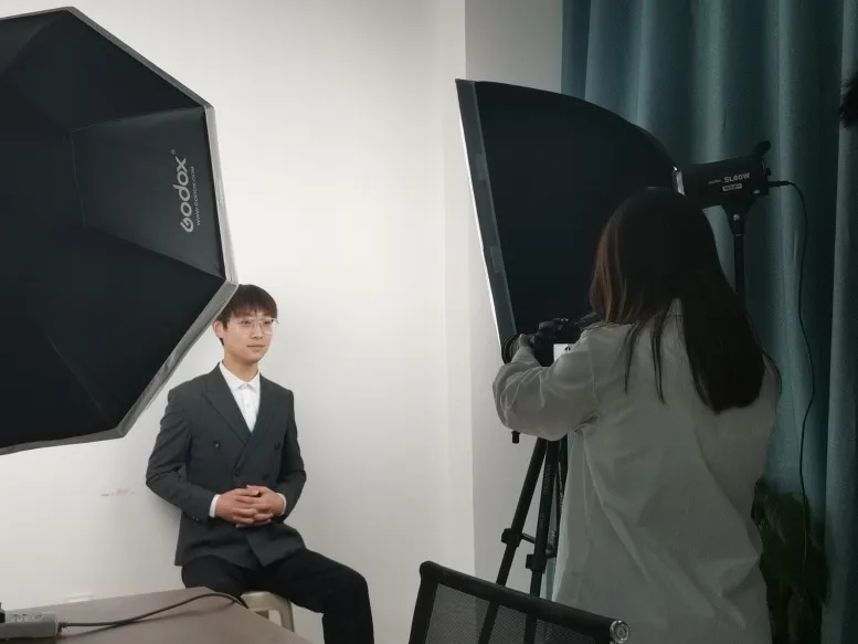 上午,第一批预约同学到达拍摄地点,工作人员分工合作、协同配合为其进行拍摄。拍摄过程中,“放松,表情自然一点,请微笑...”工作人员为毕业生进行坐姿、表情管理、镜头表现等相关指导,并积极听取同学的意见,尽量满足同学的拍摄需求。