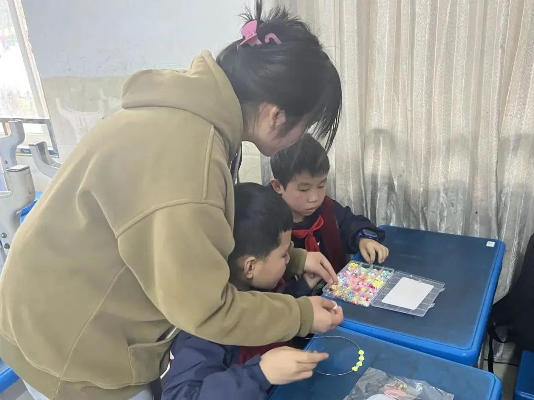 在手工课堂上,通过老师们的细心教学,学生们将一个个简单的零件经过组合变成漂亮的手链、项链等物品,看到精美的成品孩子们幸福满满。这次生动的手工课堂既锻炼了孩子们的动手能力,又激发了孩子们的创造力和想象力。