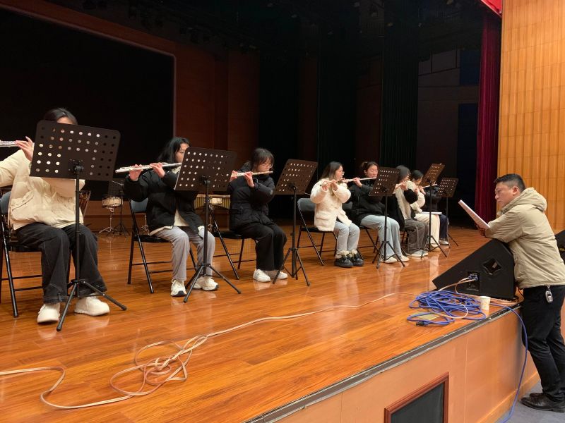 同学们初入团时,对乐器演奏几乎一无所知,但凭借着对音乐的热爱和不懈的努力,在短短一学期内实现了令人瞩目的成长。在考核现场,梁宇老师认真聆听每一个声部的演奏,同学们对从最初的气息都难以掌控,到能够较为流畅地吹奏简单旋律,克服了嘴唇振动和指法配合的难题,尽管音色尚显稚嫩,但每个音符都倾注了他们的专注与执着。
