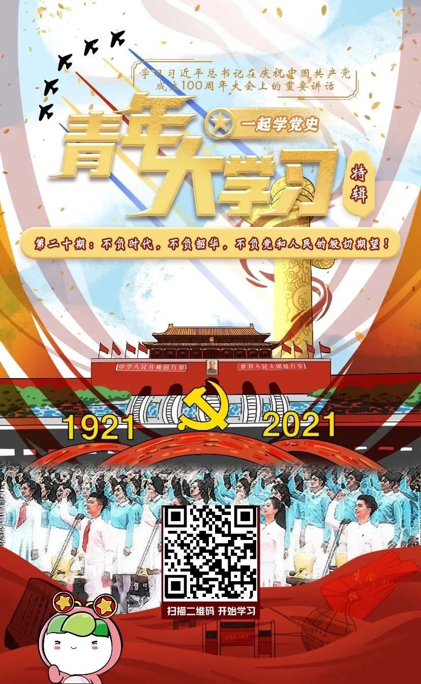 7月1日,庆祝中国共产党成立100周年大会在北京隆重举行,习近平总书记发表重要讲话。在讲话即将结束的时候,总书记深情讲道:新时代的中国青年要以实现中华民族伟大复兴为己任,增强做中国人的志气、骨气、底气,不负时代,不负韶华,不负党和人民的殷切期望!