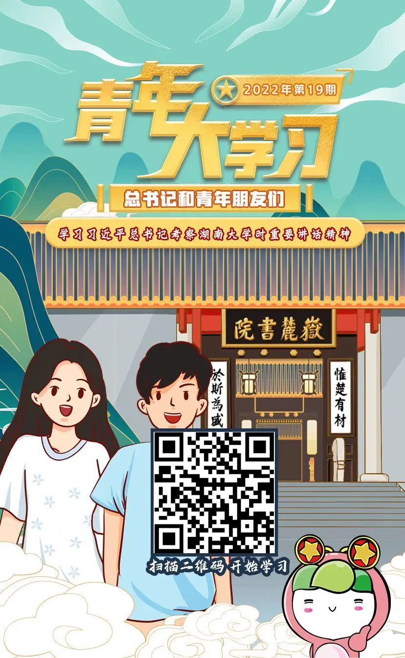 在岳麓书院的门口,面对闻讯赶来的湖大学子,习近平总书记嘱咐大家要不负青春、不负韶华、不负时代,珍惜时光好好学习,掌握知识本领,树立正确的世界观、人生观、价值观,系好人生第一粒扣子,走好人生道路,为实现中华民族伟大复兴贡献聪明才智。