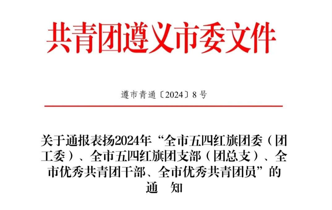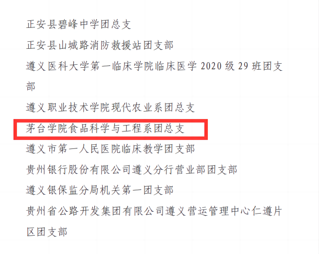 近日,共青团遵义市委发布《关于通报表扬2024年“全市五四红旗团委(团工委)、全市五四红旗团支部(团总支)、全市优秀共青团干部、全市优秀共青团员”的通知》,食品科学与工程系团总支荣获遵义市“五四红旗团总支”荣誉称号。