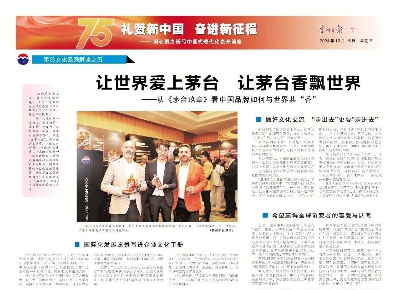 正如《茅台玖章》写的,让世界认同茅台、喜爱茅台、青睐茅台,使承载着中华千年文化底蕴的茅台芬芳,成为连接不同文明、共享美好生活的桥梁,大道同行,美美与共。