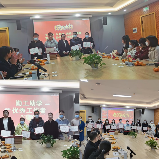 为践行社会主义核心价值观,进一步弘扬“奉献、友爱、互助、进步”的志愿精神,在图书信息中心内部树立学习的楷模和标杆,激励并号召更多的勤工助学学生向优秀志愿者学习,12月13日晚在图书馆825会议室举行了2022年度优秀学生工作者颁奖典礼,对在勤工助学和阅读推广工作中表现突出的优秀同学进行了表彰,图书馆全体老师和勤工助学学生参加了本次典礼。