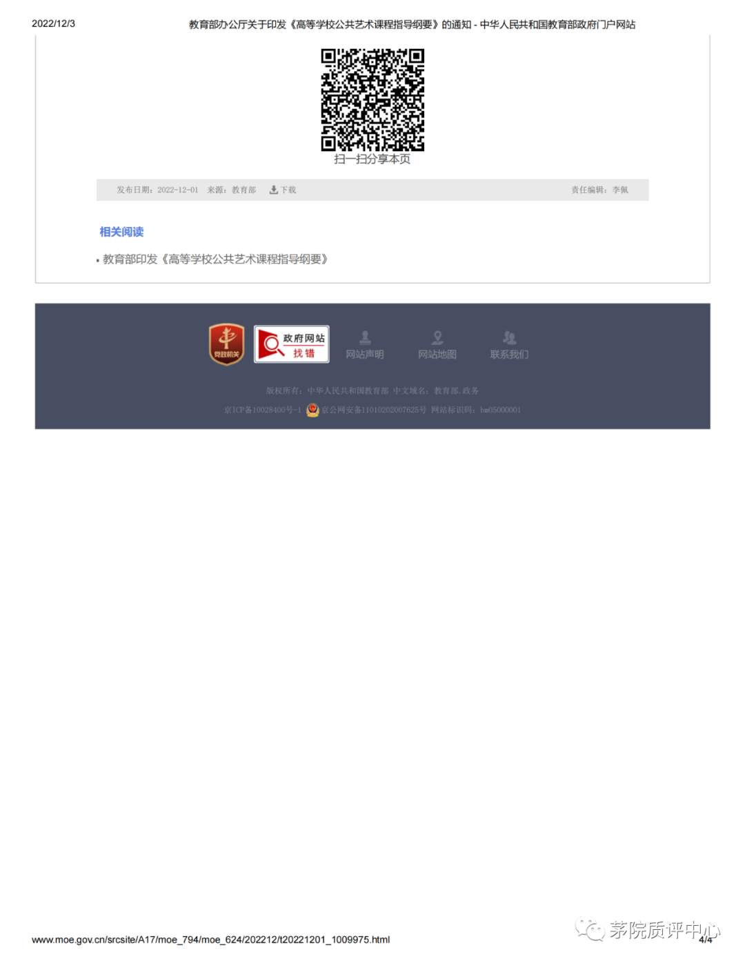 2022年11月26日,《教育部办公厅关于印发<高等学校公共艺术课程指导纲要>的通知》发布。下面分享《通知》全文,供大家学习。