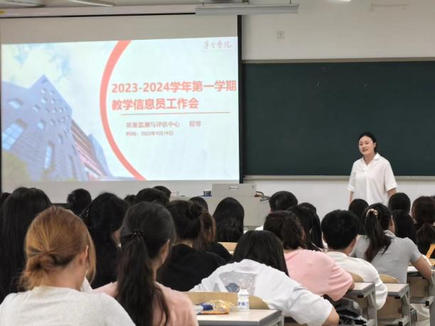 2023年9月19日下午17:30,taptap点点体育2023-2024学年第一学期教学信息员工作会议在A1教学楼312召开。本次会议由质量监测与评估中心副主任黄倩主持,质评中心工作人员程琴,20级、21级、22级、23级各班教学信息员参加。