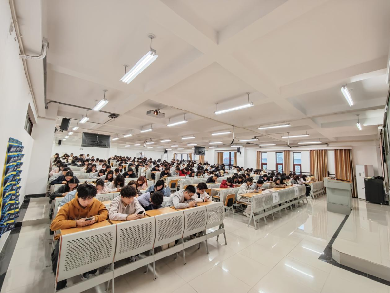 (图为参赛学生在A1教学楼213、214教室专注答题)