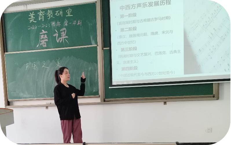 课堂教学是人才培养的关键环节,也是本科教学工作合格评估重点检查内容。为进一步深化课堂教学改革,提升课堂教学的质量,保证全体教师以良好的精神面貌和教育教学水平迎接评估,按照taptap点点体育及公共基础教学部教学大练兵的相关要求,美育教研室组织开展了系列磨课活动。