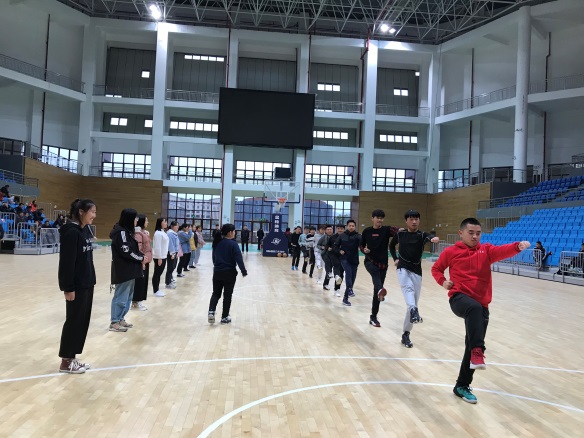 在学院体育馆内,遵义师范学院体育学院武术教师种松同志进行了示范课展示,种松教授组织安排合理、动作规范、语言流畅、重难点突出,并运用多个示范面教给学生拳法、步法、手法等知识,纠错及时,体育教研室全体教师观摩学习并记录。教研室主任赵冠群同志鼓励大家认真学习总结、提高上课质量,力争把体育课做成学校的品牌课。
