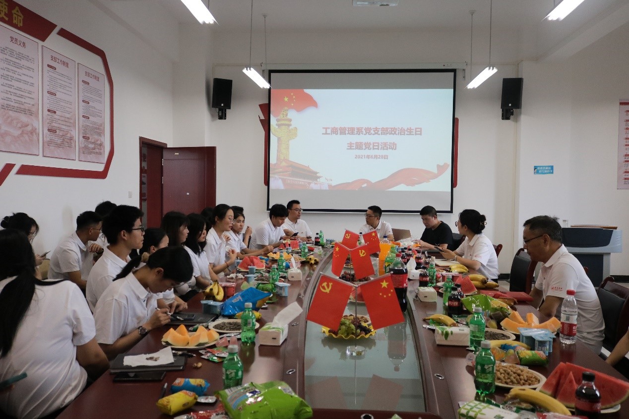 6月28日下午,taptap点点体育工商管理系全体党员在党员活动室汇聚一堂,座谈交流,集体过“政治生日”。