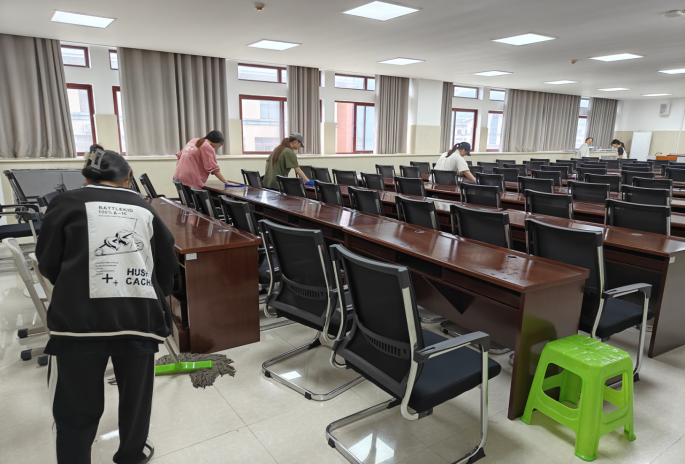 最后,工作人员对各打扫区域展开严格检查,仔细查看每一处角落,从地面的细微污渍到桌面的清洁程度,不放过任何细节。经检查,各区域均达到了干净整洁的标准,为同学们日后学习营造良好氛围。