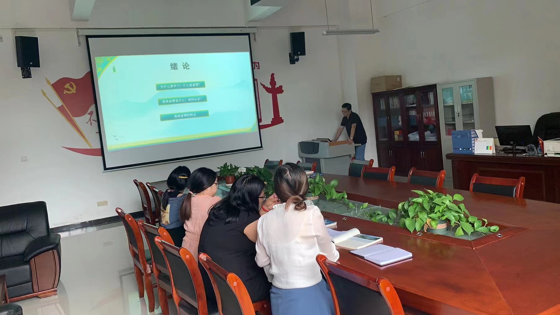 说课结束后,各位老师就说课内容和绪论部分进行了交流研讨,老师们一致认为,《贵州省情》的课程绪论作为新生进入大学的第一课,必须在学习方法上给学生不同以中学阶段的引导,帮助学生养成良好的学习习惯,培养他们对课程的兴趣,这就需要教师在教学案例的选取和教法上不断的创新。教研活动最后,大家表示,通过主备教师的分享展示,自己收获很大,希望以后多开展这样的教学活动。