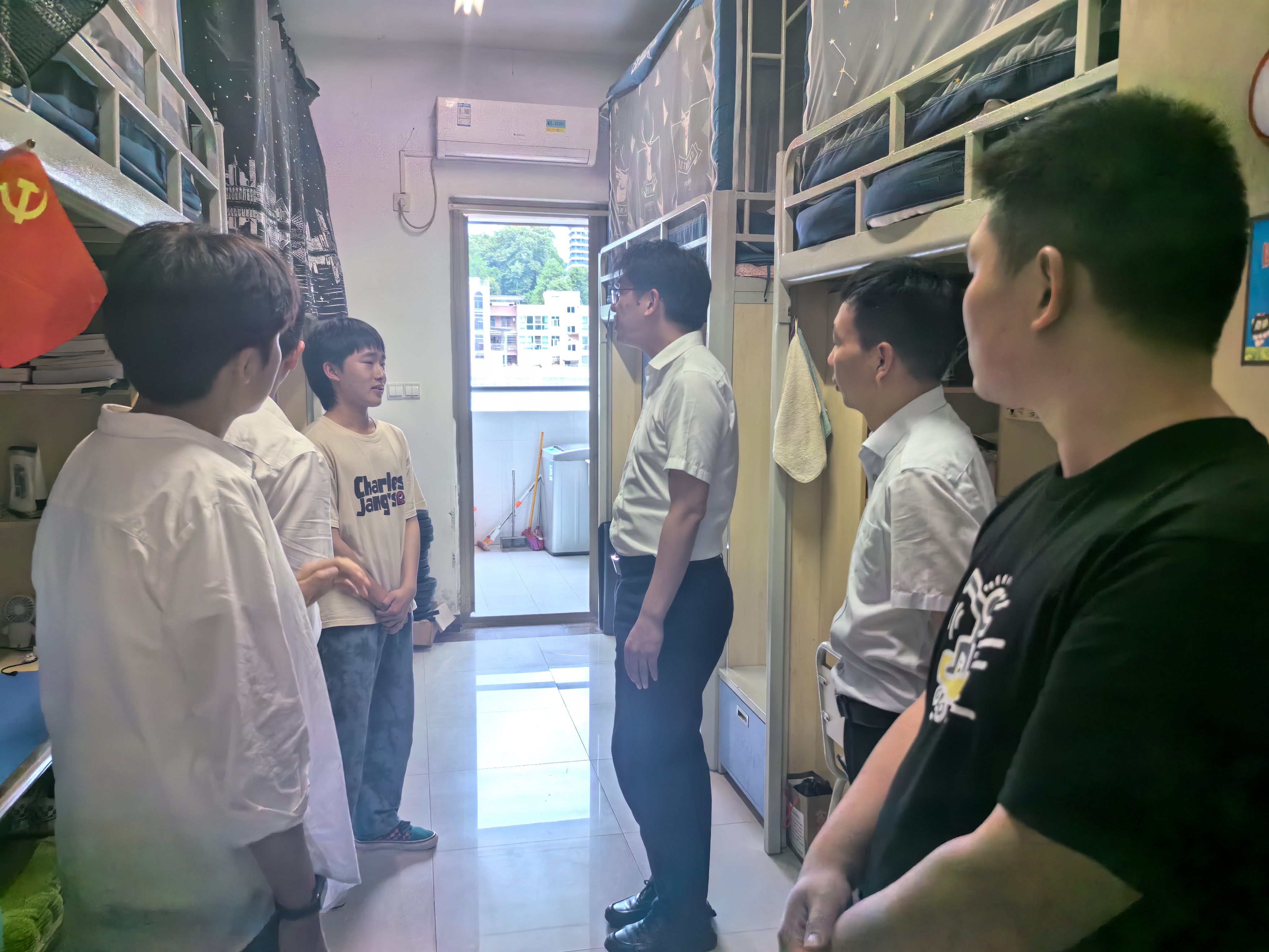 活动当天,张春林副校长与我系党政领导班子走进学生宿舍,深入学生党员中间,与他们进行亲切的交谈,关心他们的生活状况和学习困难,鼓励他们在面对挑战时坚定信念、勇往直前。