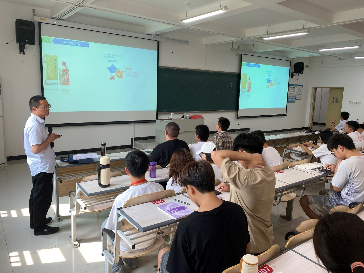 此次讲座以“酱香型白酒制酒生产工艺及关键工序”为主题,主要讲解了白酒的概念、白酒的分类、制酒的生产工艺及关键工序。以茅台的生产工艺为例,总结出打糟上甑要“切细”、晾堂操作要“制细”、处置入窖要“抓细”、窖池管理要“精细”、开窖取醅要“仔细”、分型入库要“心细”等操作要领。最后以茅台酒的自然之美、平衡之美、各美其美、美美与共来诠释茅台酒的美。在讲座最后,罗老师还耐心的解答了同学们一些关于白酒生产的疑问。