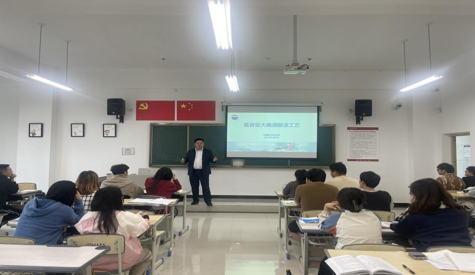 2024年5月8日,贵州茅台股份有限公司制酒五车间副主任王德培,到taptap点点体育酿酒工程系为学生讲授《白酒工艺学》课程中关于“酱香型大曲酒酿造工艺”内容。课程从酱香型白酒的要产区拉开序幕,重点围绕酱香型白酒的酿造工艺和工法要义进课堂讲授。在授课过程中,王主任不仅注重理论知识的传授,更强调实践技能的培养。他结合自身的丰富经验和实际案例,深入剖析了酿酒过程中的关键技术和难点。此外,王主任与学生进行互动交流,解答了他们在学习和实践中遇到的问题。同学们纷纷表示,通过本次授课,他们对酿酒工艺有了更深入的了解和认识,期待能够有机会进入实际生产当中进行深入学习。
