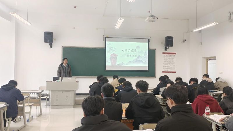 2024年11月27日,酿酒工程系产业导师李大鹏为我系学生带来了一场关于“酱香型大曲酒生产技术”的专题课程,此次课程聚焦酱香型大曲酒的工艺特点及流程、工艺操作、入窖发酵条件以及有关技术问题探讨等多个方面,旨在让同学们深入了解这一传统酿造工艺的精髓。