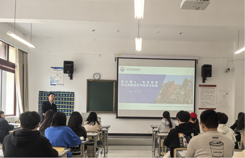 2025年4月7日,贵州茅台酒股份有限公司制酒十八车间主任陈名到点点体育为酿酒工程学院学生授课,讲授题为《“顺天敬人、明理厚德”——茅台酒酿造技艺传承与创新》的课程内容。