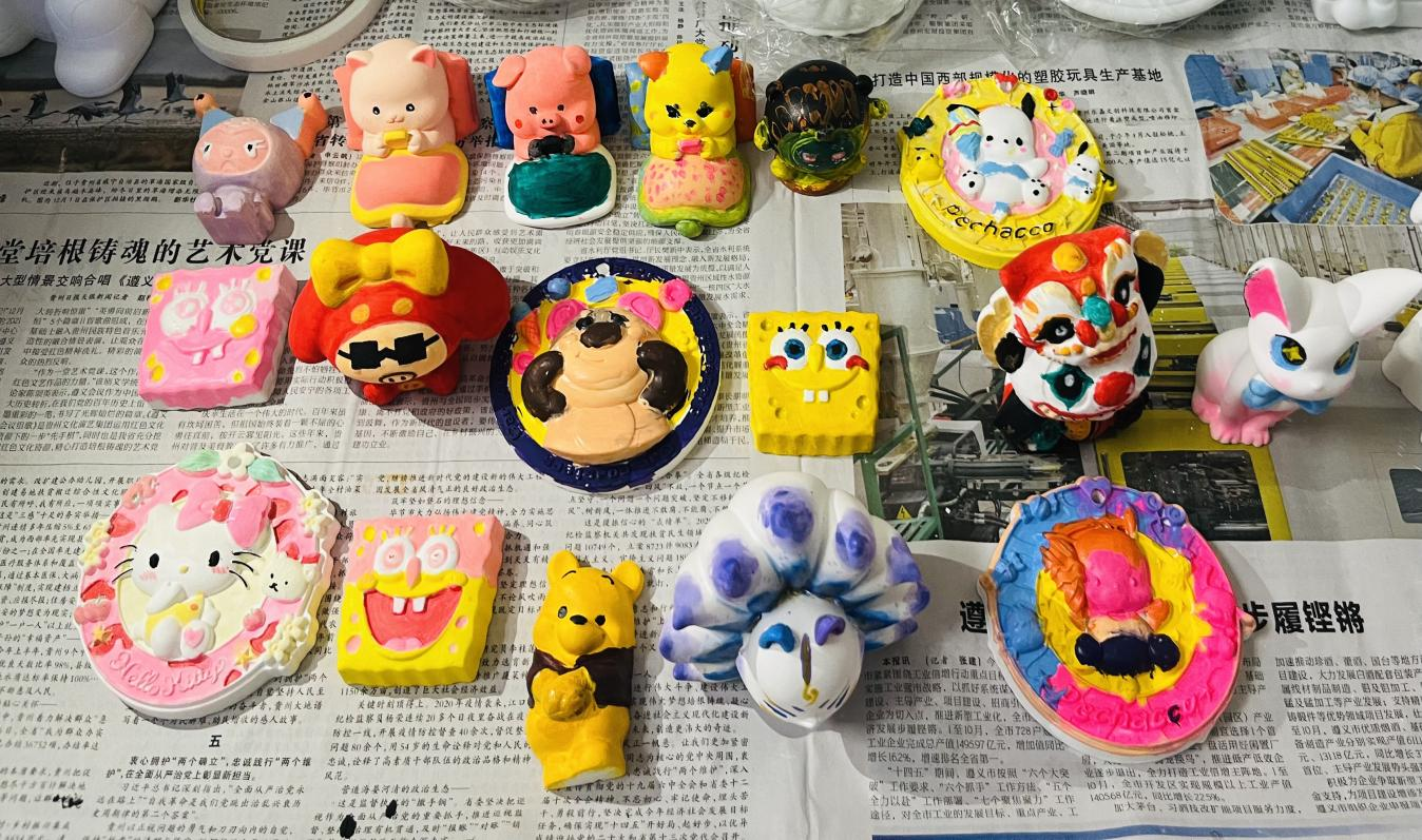 执笔绘青春——DIY石膏娃娃环节,同学们认真挑选心仪的石膏娃娃,在细致的画笔下,原本纯白的娃娃拥有了色彩,变得熠熠生辉。这些色彩不仅是同学们内心世界的投影,也是他们对未来憧憬的象征。笔尖触碰的瞬间不仅是色彩的流转,更是心灵的交流,整个绘画过程是充满想象力和创造力的过程,同学们在描绘石膏娃娃时,不只是在复制一个物体的外观,更是在用自己的理解和情感去诠释它。