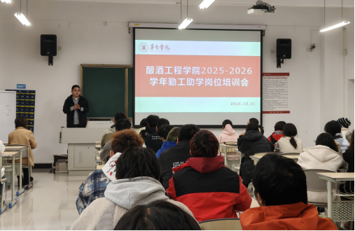 为强化勤工助学学生责任担当,促其在教学管理实践中锤炼成长。2025年10月31日,酿酒工程学院于报国楼A2-205开展2025-2026学年勤工助学岗位培训会。学院党总支书记、副院长刘京老师,党总支副书记吴鹏西老师,教学秘书梁凡老师以及全体勤工助学成员参会。会议由学院学生工作室主办赵新城老师主持。