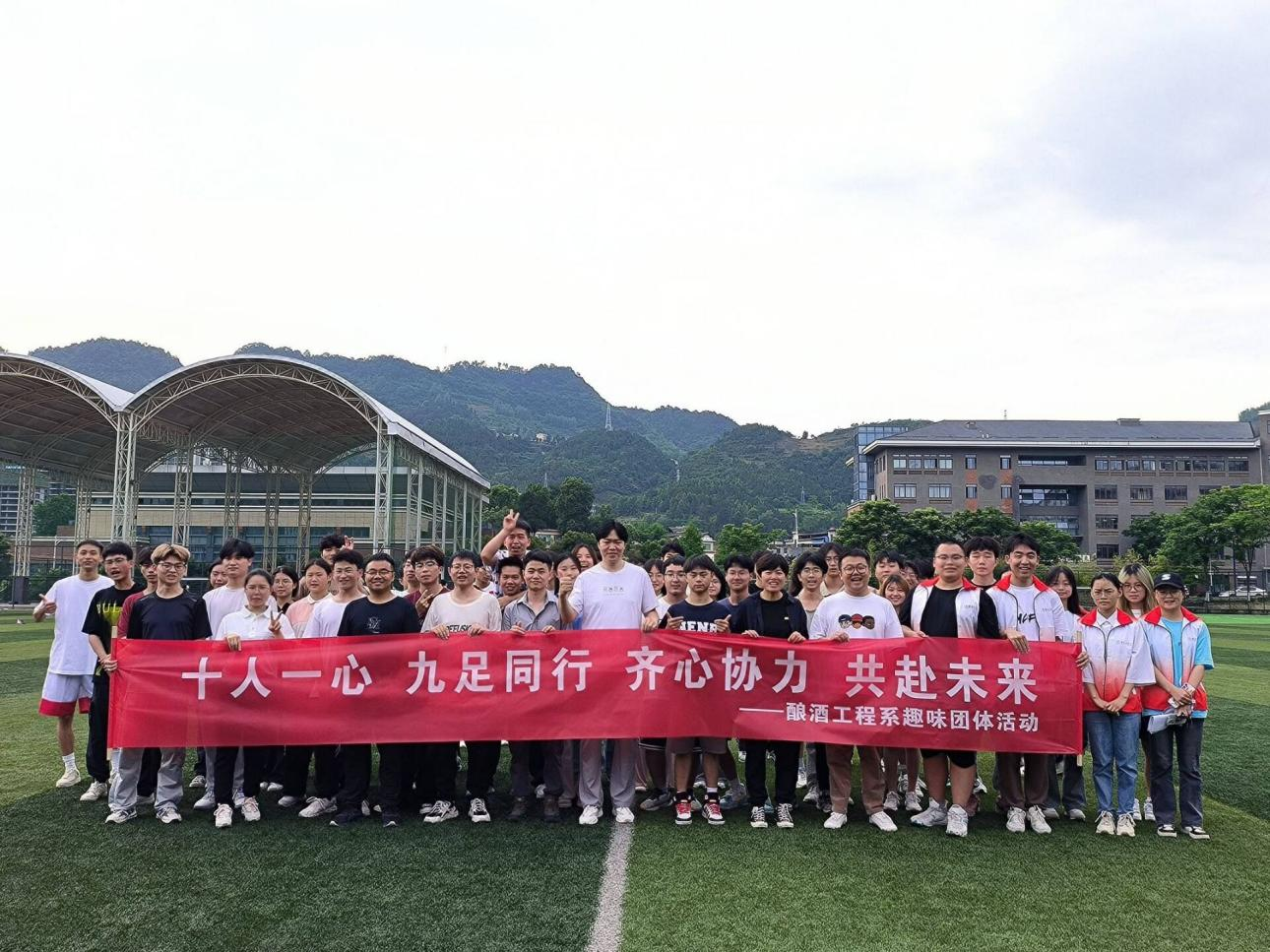为丰富学生课余生活,鼓励学生走出寝室、走下网络、走上操场,享受运动魅力,缓解学生学习压力,增进同学友谊。2024年5月23日,酿酒工程系于风雨操场组织开展“齐心协力,共赴未来”十人九足师生趣味团体活动。