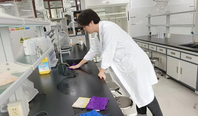 实验室是开展教学科研、培养实践能力的重要基地,其环境整洁与设备规范直接关系到教学质量和师生安全。活动当天,同学们准时在学院实验楼前集合,他们身穿志愿服,手持扫帚、拖把、抹布等清洁工具,精神饱满,热情高涨。在活动负责人的统一安排和实验室老师的专业指导下,志愿者们被分为若干小组,各司其职,分工协作。他们本着“不怕脏、不怕累”的精神,对实验室的各个角落进行了彻底清理一组同学负责擦拭实验台面、通风橱和仪器设备表面,细心清除残留的污渍和灰尘,确保每一台精密仪器都光洁如新二组同学专注于地面清洁,他们认真扫地、拖地,不放过任何一个卫生死角,让实验室地面焕然一新。
