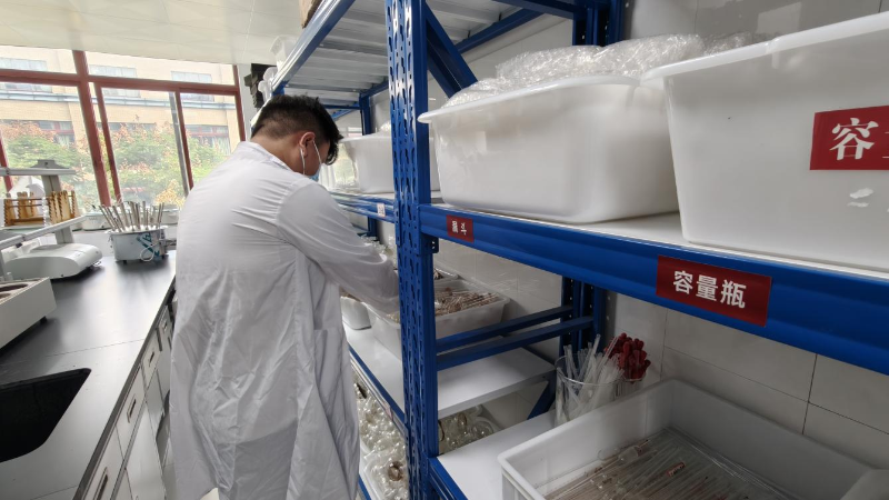 三组同学则对实验器皿进行了集中清洗和归类整理,将烧杯、量筒、锥形瓶等摆放得整齐划一,方便后续实验取用。另有同学负责检查并清理试剂架,核对标签,将废旧物品进行分类处理,消除了潜在的安全隐患。
