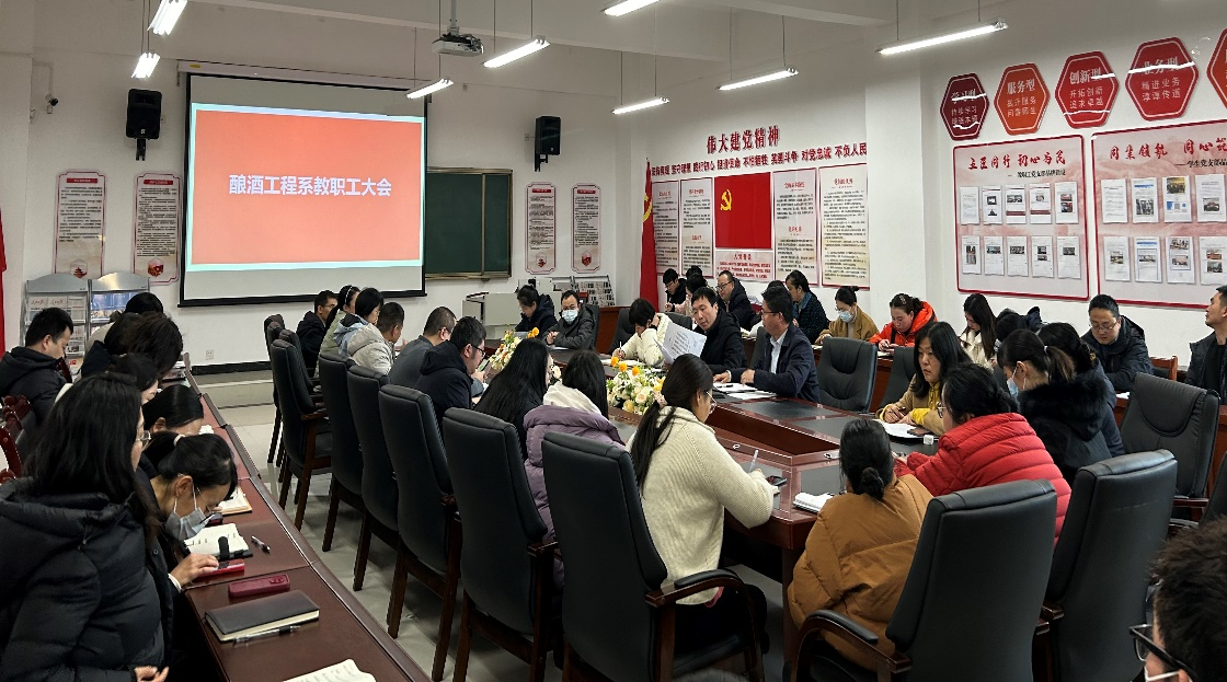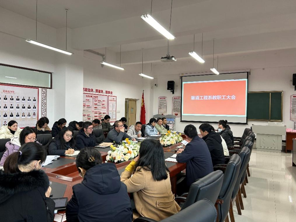 为确保新学期各项工作的有序开展,2024年2月24日上午10:30,酿酒工程系于A2-208召开新学期开学工作部署会议。会议由我系党总支书记、系主任郭举主持,全体教职工齐聚一堂,共同探讨和规划新学期的各项工作。