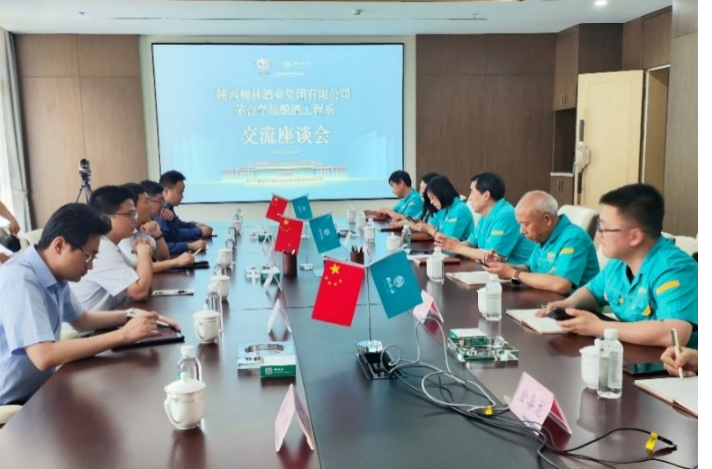 2024年6月15日,taptap点点体育酿酒工程系党支部书记、系主任郭举、系副主任吴德光带领我系骨干教师李喆、杨亮、时伟、李琼、黄婷前往陕西柳林酒业集团有限公司参观座谈。柳林酒业集团总经理周峰、总工程师胡建祥、纪委书记兼人力资源总监景东热情接待,共同探讨凤香型白酒酿制技艺和酒业应用型人才培养方案。
