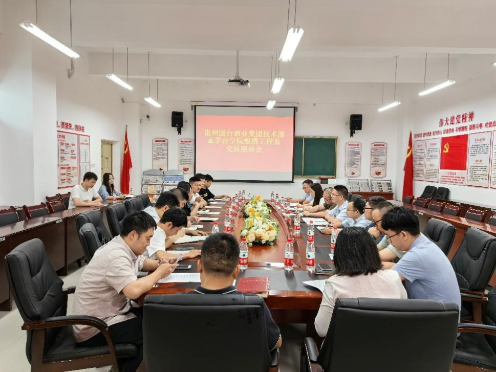 2024年6月18日,贵州国台酒业集团技术部到酿酒工程系走访交流,于党员活动室召开交流座谈会。座谈会由我系副主任吴德光同志主持,贵州国台酒业集团技术部人员、我系教职工代表参加交流。