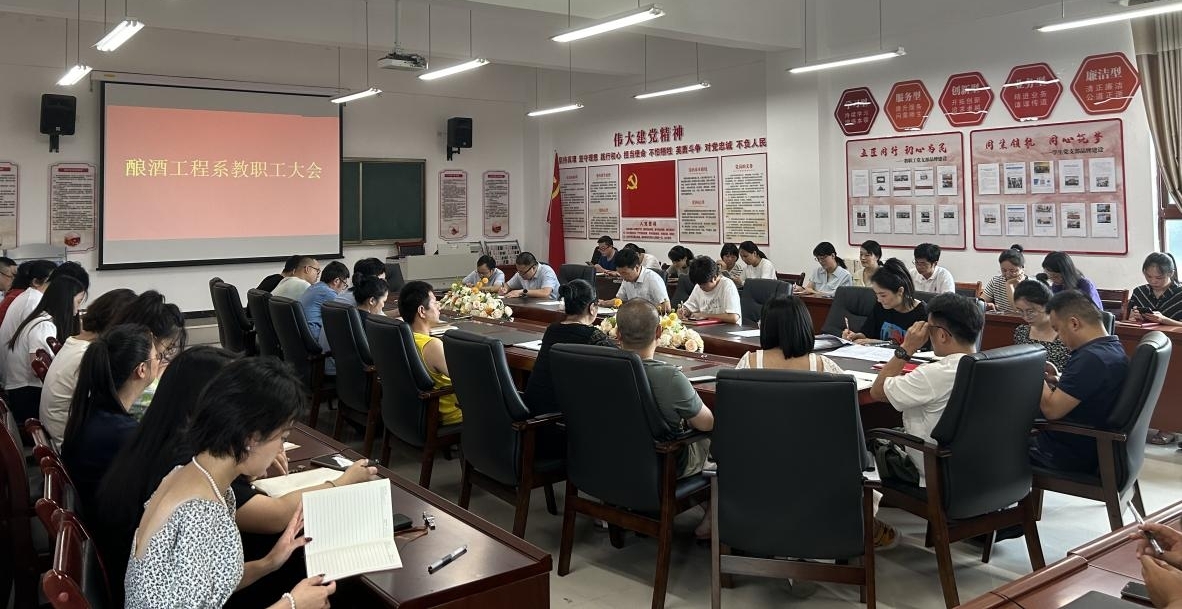 为全面总结本学期工作成果,科学规划下学期工作蓝图,确保教育教学、科研及其它各项工作的顺利推进,酿酒工程系于2024年7月11日上午10:30召开全系教职工大会。此次会议由我系党总支书记、系主任郭举主持,全体教职工参会。