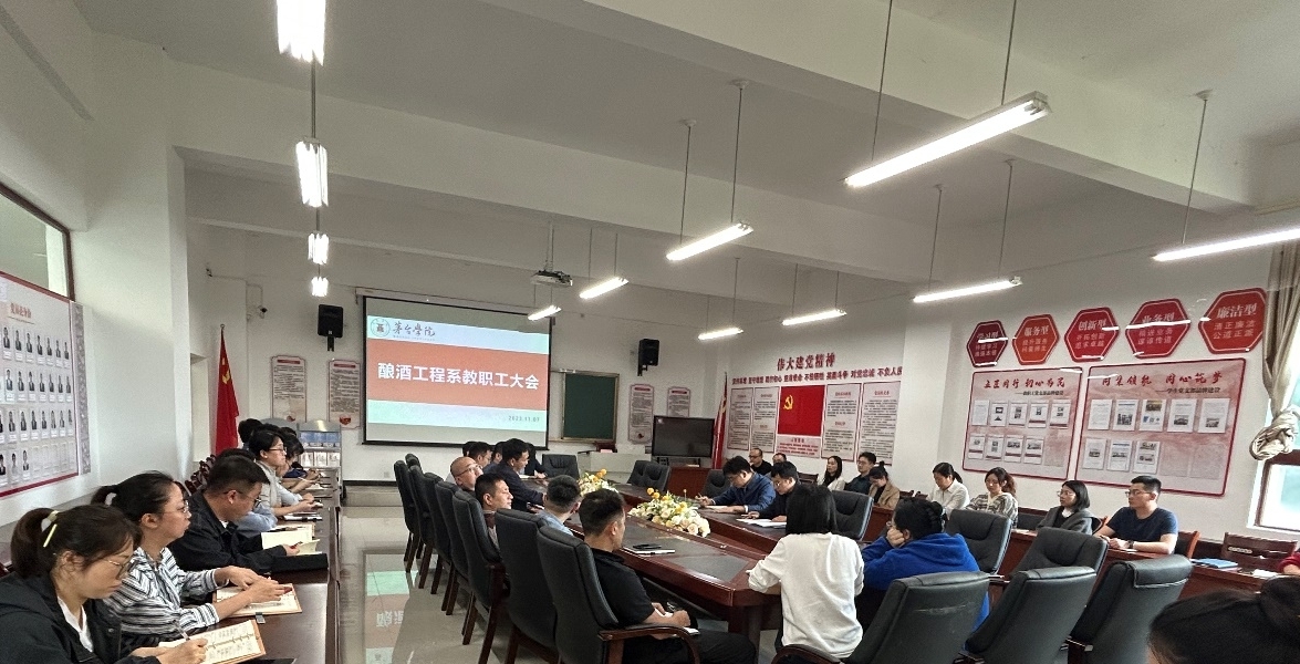 当前,学校本科教学工作合格评估正处决胜决战的关键时刻。为激励大家提振精神、鼓足干劲,全面落实迎评准备相关工作,2023年11月7日,酿酒工程系组织召开全系教职工大会,对评估工作做再次动员部署。会议由我系党总支书记、系主任郭举主持,学校党委委员、副长张春林出席会议,我系全体教职工参加。