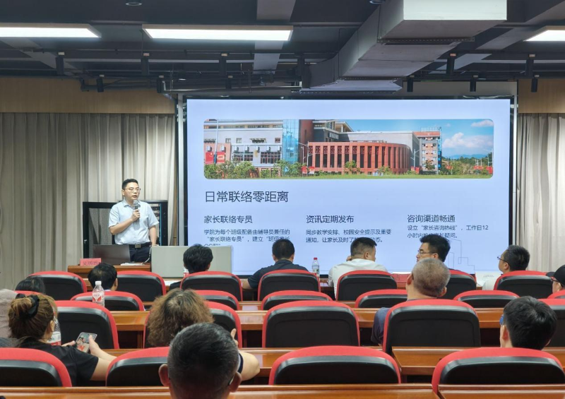 副院长吴德光发表欢迎致辞,代表学院对各位家长的到来表示热烈欢迎,并就学校的历史沿革、师资力量、专业建设、人才培养模式及办学特色等方面作了全面介绍。他强调,学校始终坚持以学生为中心,注重理论与实践相结合,致力于培养高素质、应用型酿酒工程技术人才,并希望家长与学院携手,共同助力学生成长成才。