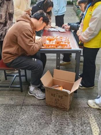 活动中,吴鹏西老师代表学院向正在全力备战考研的同学们表示诚挚慰问,勉励大家坚定信心、沉着复习,以平稳心态和扎实准备迎接挑战,并强调学院将持续做好服务保障工作,全程为考研学子保驾护航。随后,工作人员为学子逐一发放“研路点灯”暖心加油包,内含考研专用文具、牛奶、能量巧克力及暖宝宝等实用物资,每一份礼品都体现了学院对考研学子的深切关怀与殷切期望。