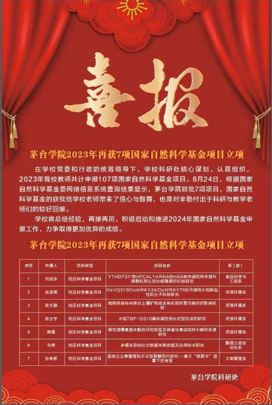 在学校党委和行政的统筹领导下,酿酒工程自动化系高度重视教师的科研工作,鼓励全系符合条件的教师积极申报各类自然科学基金项目,并在申报过程中开展专题交流,组织相关领域的专家进行多轮次的指导。近年来,酿酒工程自动化系已获批多项国家自然科学基金项目立项,为老师们带来了极大的信心与鼓舞。接下来,我系将总结经验、加强交流,积极启动和推进2024年国家自然科学基金申报工作,力争获得更大的成绩,取得新的突破!