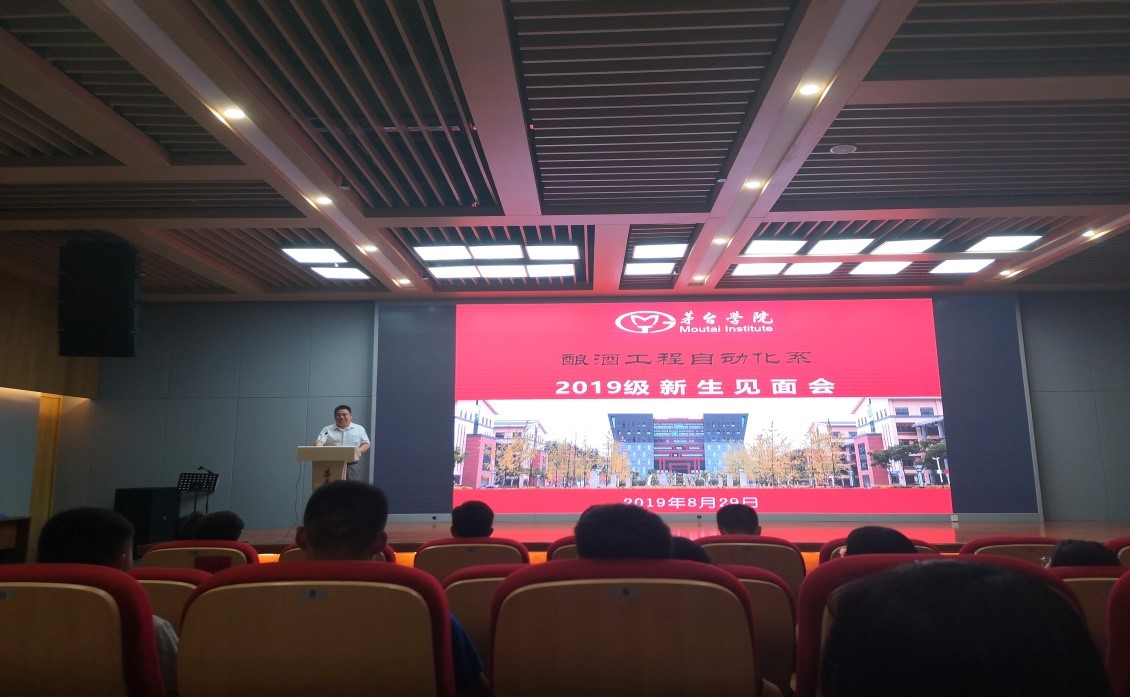 2019年8月29日20:00,酿酒工程自动化系在图书馆一楼报告厅举行2019级新生见面会,自动化系老师彭天昊老师担任本次活动主持人,系主任张建峡教授、自动化系潘峰老师、杨胜林老师、李相臣老师、何国锋老师、刘杰老师王陈诚老师、夏玲玲老师、申雄宇老师等教师以及2019级全体新生参加此次活动。