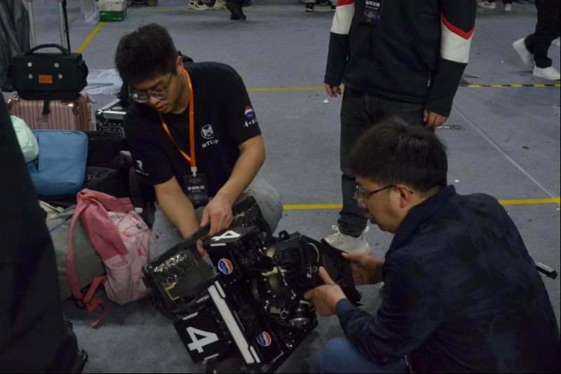 在赛场上,MTI战队的成员们化身为机器人的守护者,面对突发故障,他们临危不乱,迅速展开抢修。他们的手指在复杂的电路和精密的零件间穿梭,每一次拆卸、每一次焊接都充满了节奏感和精准度。他们的眼神专注而坚定,仿佛时间在这一刻静止,只有他们与机器人的对话。