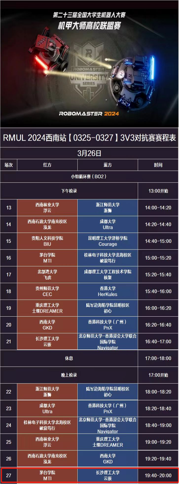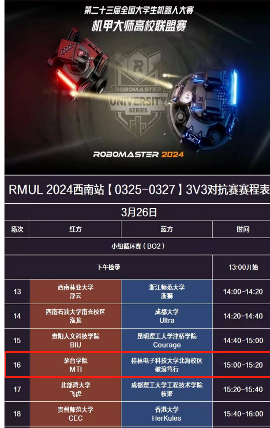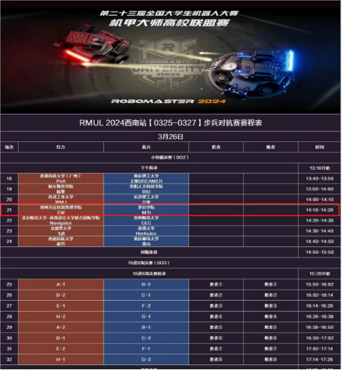 步兵对抗赛赛程展示