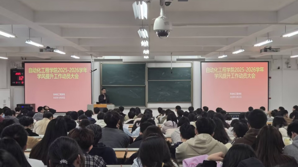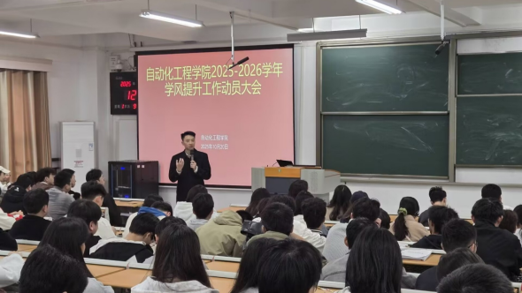 为进一步强化育人阵地建设,营造勤学善思、笃行致远的优良学风。2025年10月20日,自动化工程学院在A1-113教室召开了2025-2026学年学风提升工作动员大会。会议由学院团总支书记申雄宇主持,学院党总支书记欧信忠、副书记肖启霞,学生工作办公室主办骆娜,各班学习委员、学生代表参加,共同为学院学风建设注入新动能。