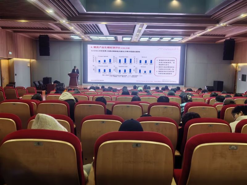活动伊始,刘源教授凭借在食品科学领域多年积累的深厚造诣,围绕酒类产品风味品质评价展开了引人入胜的讲解。刘源教授及其团队的科研成果主要集中在运用感知客体风味组学,精准鉴定白酒特征成分;针对不同轮次及系列白酒,从口感、滋气味等多维度解析其风味组分;基于靶向与非靶向多组学,深入鉴定白酒特征标记物质,助力白酒品质提升与创新发展。