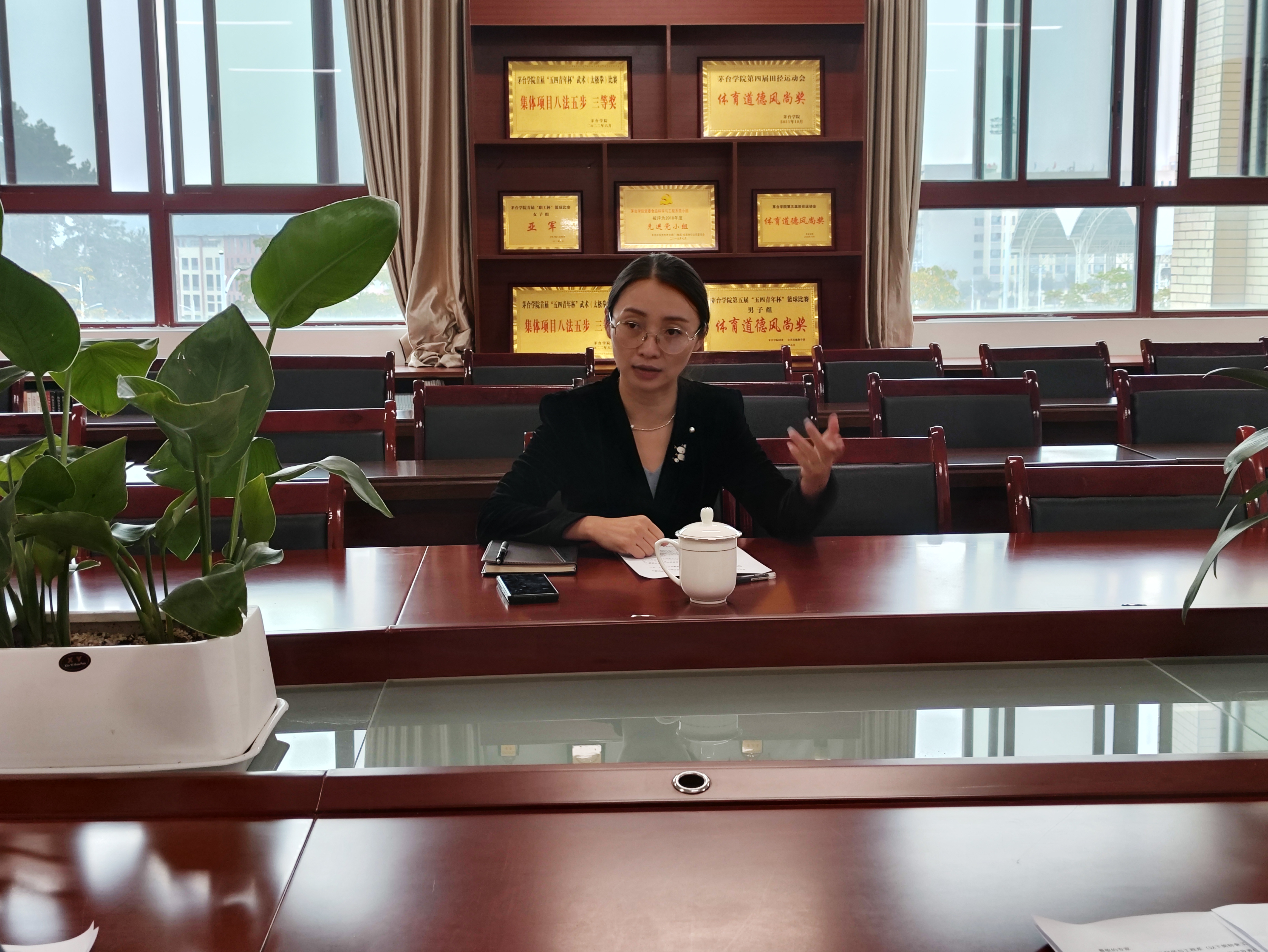 余莉听取了食工系党总支书记喻仕瑞关于实验室及实践教学基地建设、展示中心、走廊文化、系部汇报PPT、文化墙、办公室5S落实情况的工作汇报,并对目前系部已完成的工作给予充分肯定,就如何做好迎评工作、汇报内容等跟与会人员进行了交流。